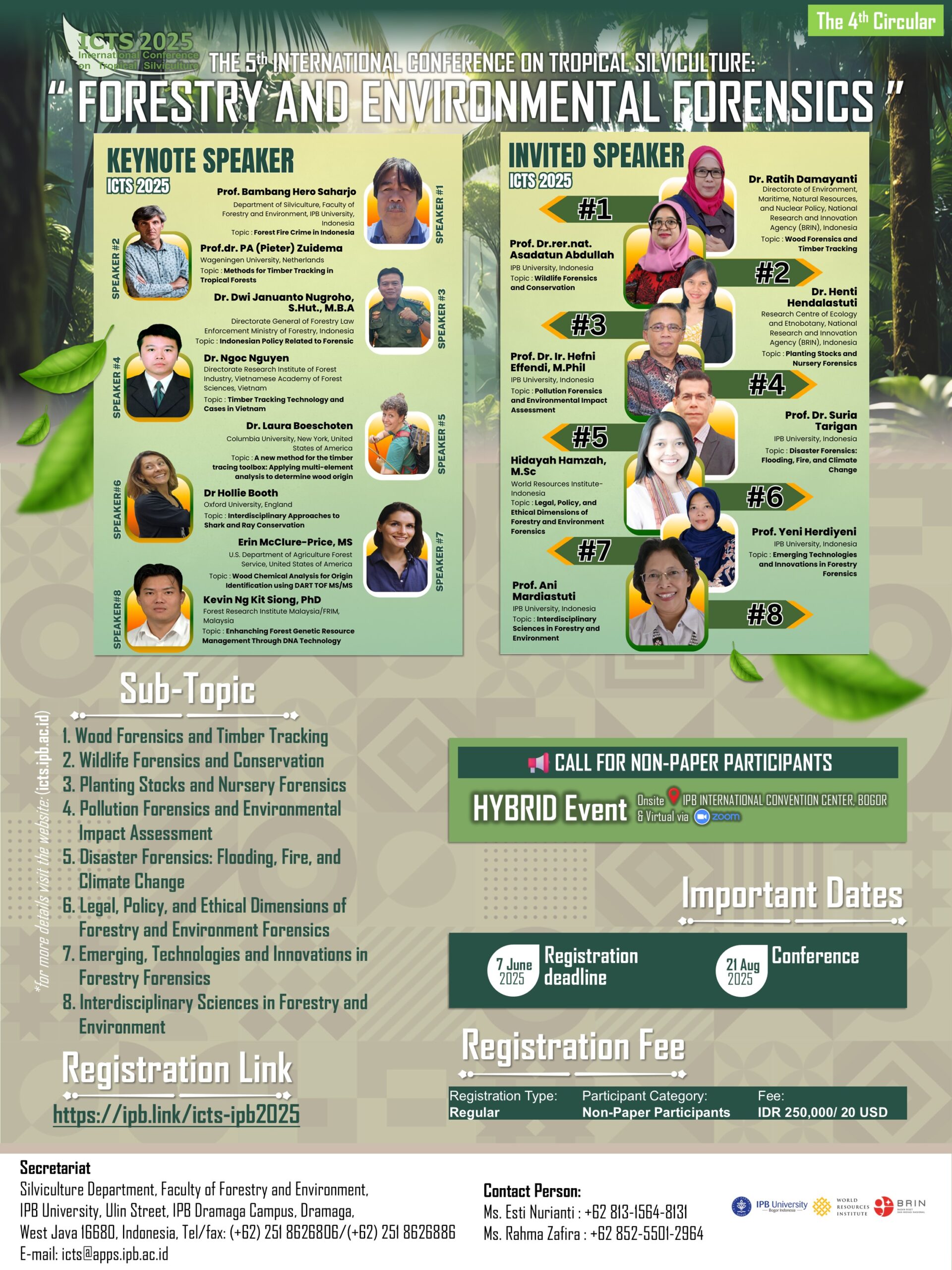 We proudly present the 5th International Conference on Tropical Silviculture (the 5th ICTS2025) with the theme “Forestry and Environmental Forensics”. The event will be held on: